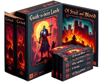 D'acier et de sang : Une campagne immersive de 170 pages, avec des scénarios s'enchaînant pour des personnages allant du niveau 3-4 à 5-6. Une ambiance féodale intense et des défis de taille, le tout dans un monde où la magie est rare et les créatures monstrueuses sont avant tout humaines dans leurs intentions et leurs actions.